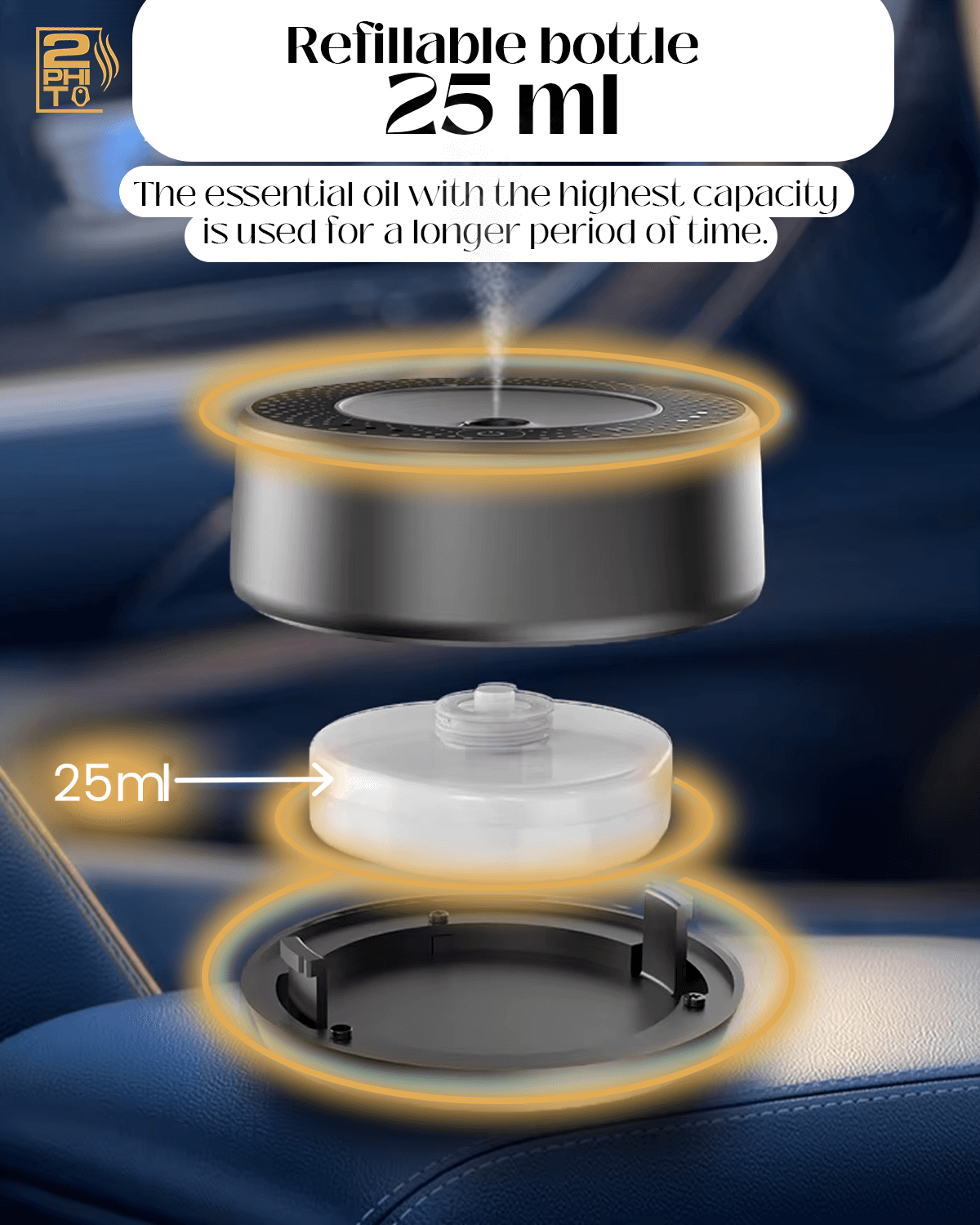 Transform every journey into a luxurious sensory experience with the Luxe Aroma Pilot , an innovative diffuser that combines elegant design with advanced technology. Designed for modern cars, this diffuser uses cold diffusion technology that preserves the purity of essential oils and perfumes, without the need for water or heat. With customizable settings, a long-lasting rechargeable battery, and a quiet motor, the Luxe Aroma Pilot is the perfect companion for keeping your space fresh and sophisticated.